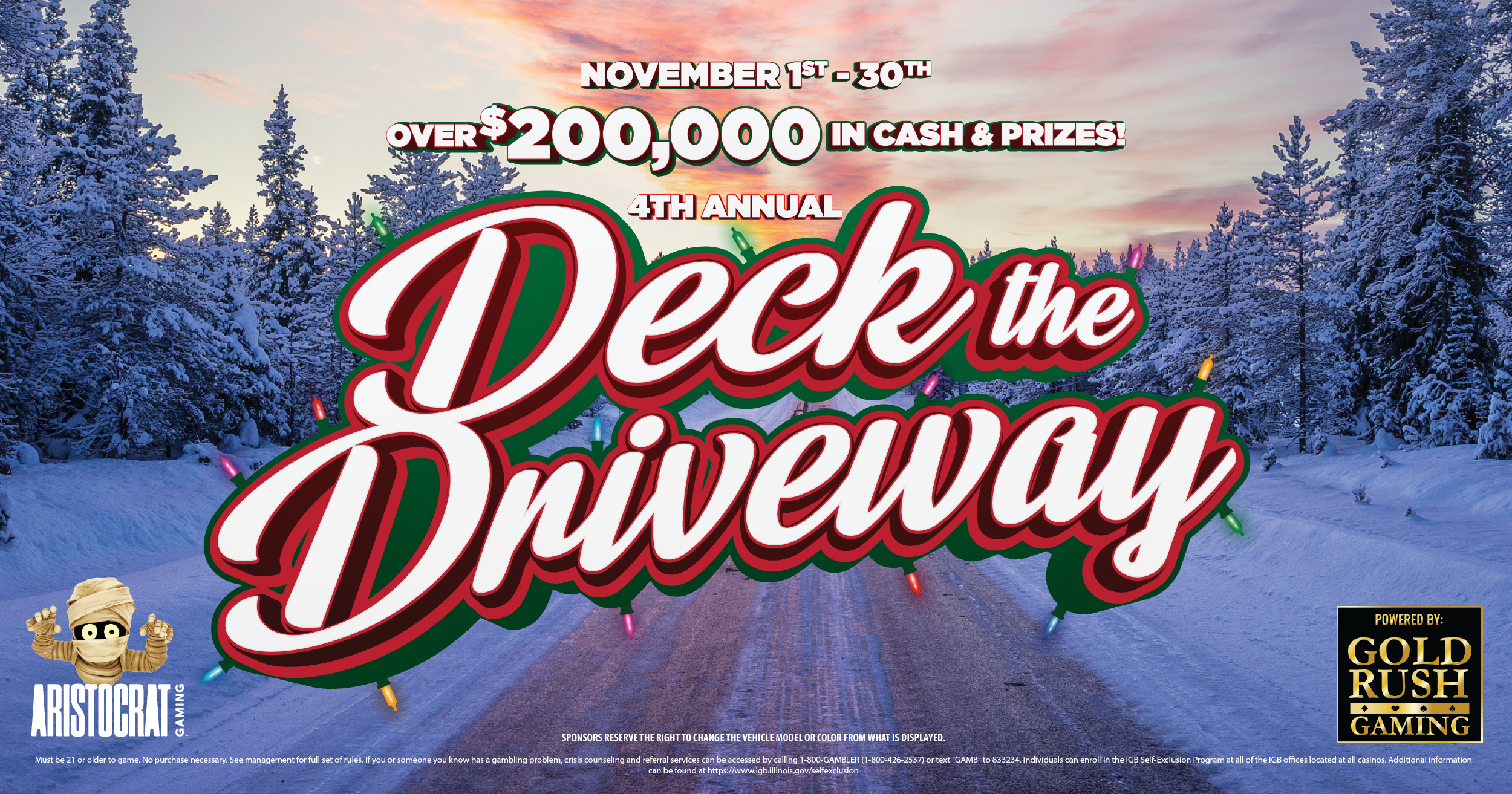 2023 Deck the Driveway RECAP Visit a participating Gold Rush Gaming location during the promotional period November 1st – December 6th and enter to win. See official rules for details. FULL SET OF RULES LIST OF PARTICIPATING LOCATIONS One (1) finalist will be randomly chosen on December 6th from each participating location to […]